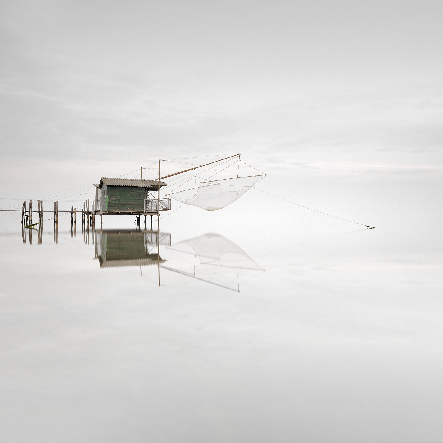 Another fishing hut in the Po Delta, taken in lovely calm and foggy conditions. Italy, 2024.